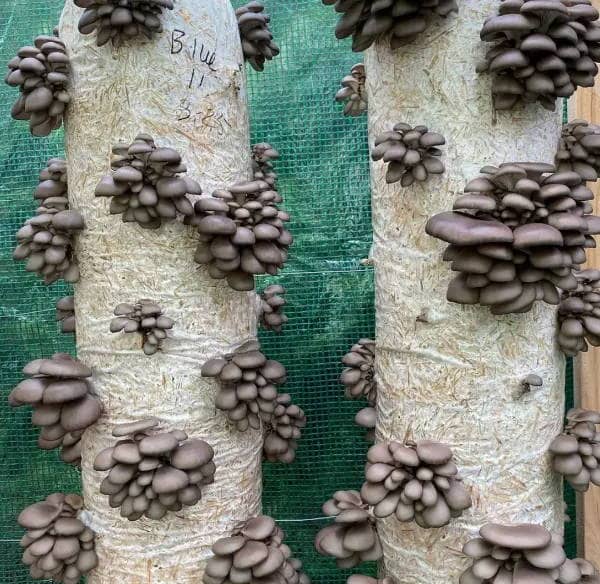 Blue oysters are versatile and can be grown in a number of ways indoors and out. For indoor cultivation we recommend growing blue oysters from an Organic Blue Oyster ‘Spray & Grow’ Mushroom Growing Kit or from an Organic Blue Oyster Mushroom Grow Kit Fruiting Block in a fruiting chamber such as our ‘BoomRoom’ Automated Mushroom Martha Tent Grow Kit or in a monotub using a substrate mixture containing sterile manure and hardwood sawdust. We offer a complete monotub walk-through video here. Keep in mind that this species is sensitive to high CO2 levels and will require a fresh air exchange system if grown indoors. Outdoors, blue oysters can be grown on logs, totems, and stumps inoculated with plug spawn or sawdust spawn using a variety of tree species including maple, oak and cherry.