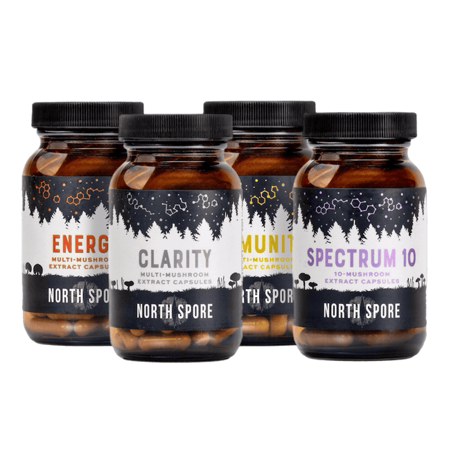 Discover the power of functional mushrooms in an easy, daily format. Our Mushroom Capsules Collection features expertly crafted blends and single-species supplements designed to support focus, energy, immunity, and overall well-being.