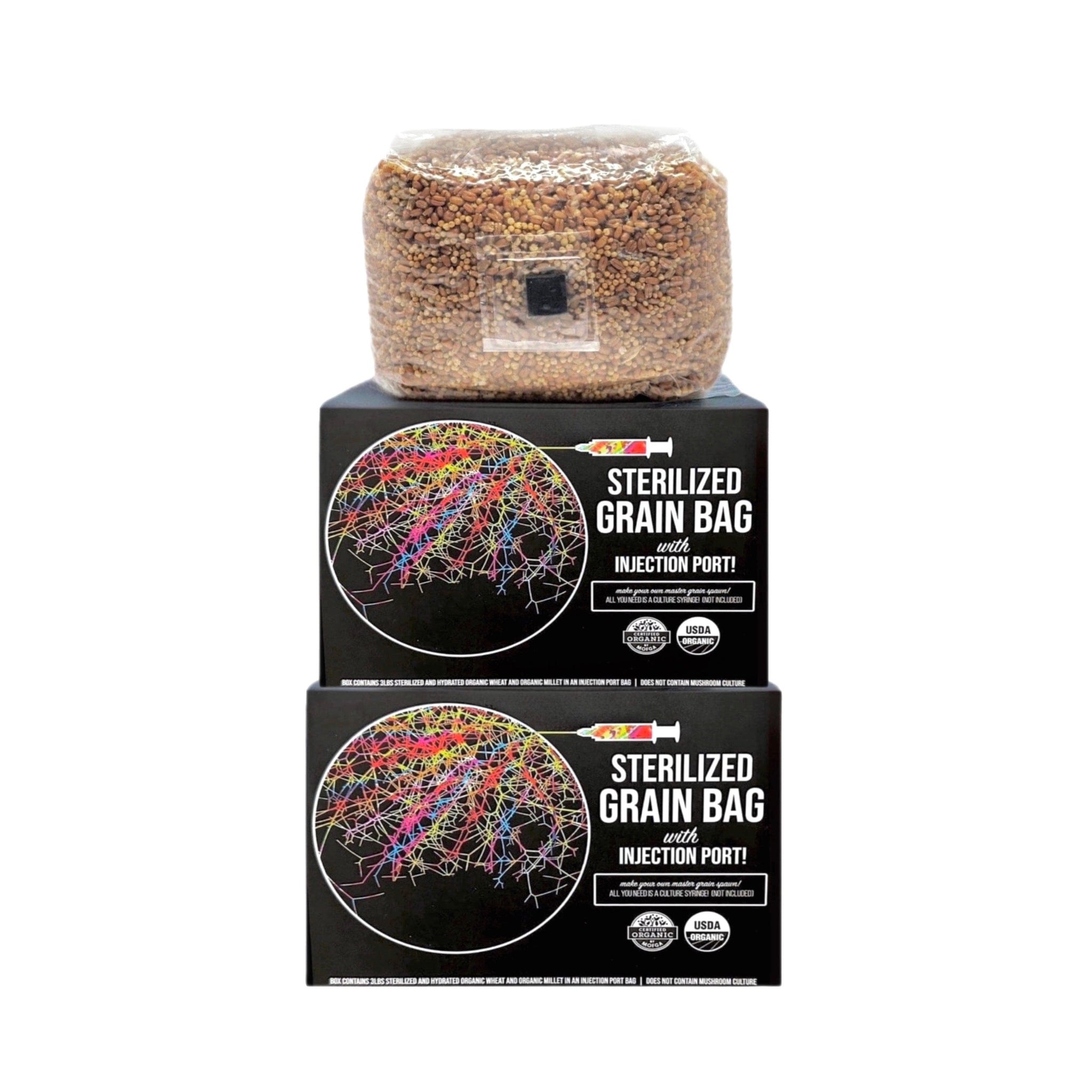 Our best-selling organic sterilized grain spawn bag was formulated by mycologists to maximize the speed and size of your mushroom grow. Each spawn bag contains our proprietary blend featuring hydrated, nutrient-rich, organic millet and wheat berries. Bags also include a self-healing injection port for use with a spore or culture syringe plus a 0.2 micron filter patch to block airborne contaminants while providing even gas exchange. Note: Color of injection port may vary.