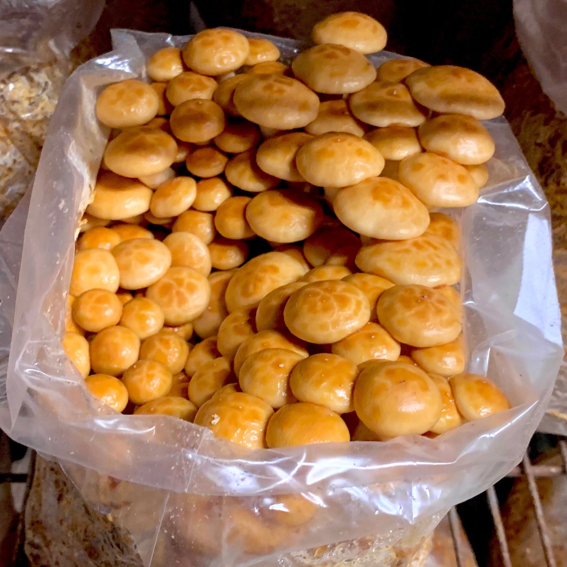 Our nameko (Pholiota nameko) fruiting blocks feature a popular strain widely cultivated in Japan. These kits produce mushrooms that have an earthy flavor with subtle fruit-like hints. And, when cooked, they will fill the air with an aroma that is reminiscent of cashews and butterscotch. As namekos grow, they become covered in a layer of natural gelatin which gives them a unique, almost shiny appearance. In addition to eating the mushroom, their gelatinous covering has a variety of uses and can be made into soups, sauces, or used as a natural thickening agent!